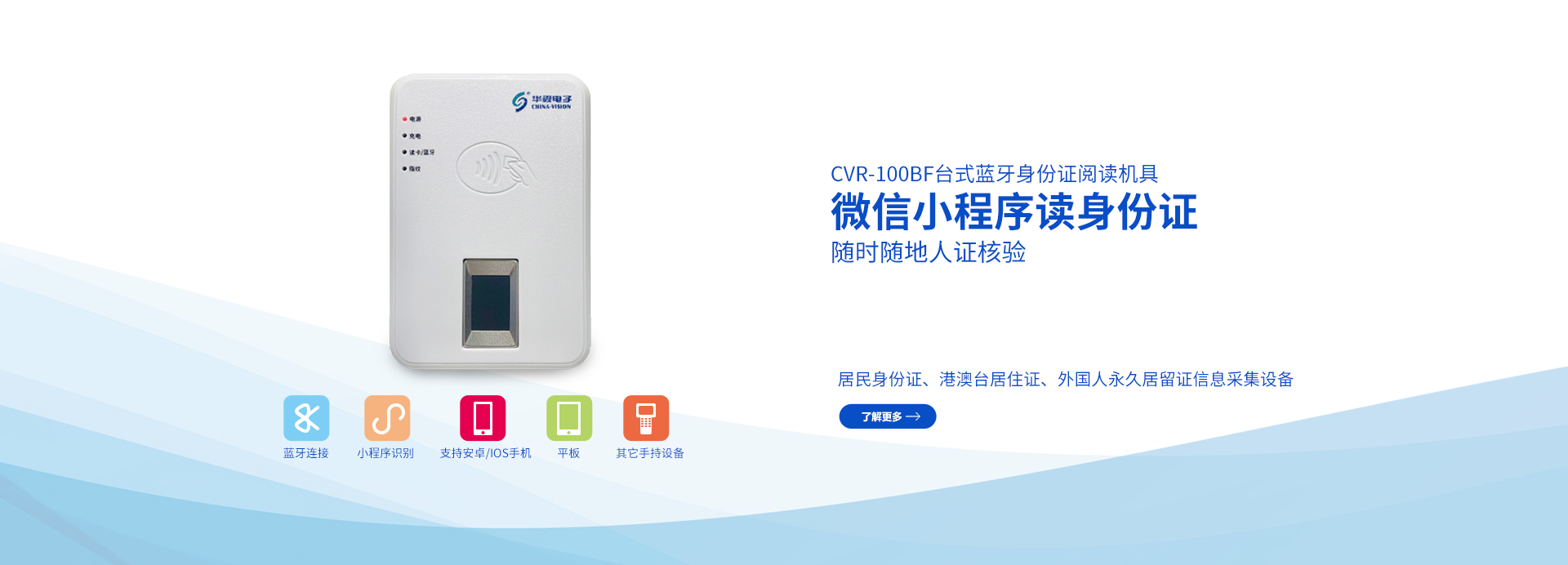 深圳華視電子讀寫設備有限公司始建于2002年,總投資人民幣1億元,注冊資本5000萬元,總部設于深圳,員工200余人。公司旗下擁有北京分公司、武漢分公司、龍華分公司,銷售及服務范圍覆蓋全國30個省市。華視電子是國內專業從事射頻識別技術產品的集開發、生產、銷售為一體的國家高新技術企業,涵蓋身份證閱讀機具、智能身份核驗設備、智慧警務等領域,是深圳市政府扶持的高新技術企業,是居民身份證閱讀機具的知名品牌,并獲得廣東省著名商標認證。